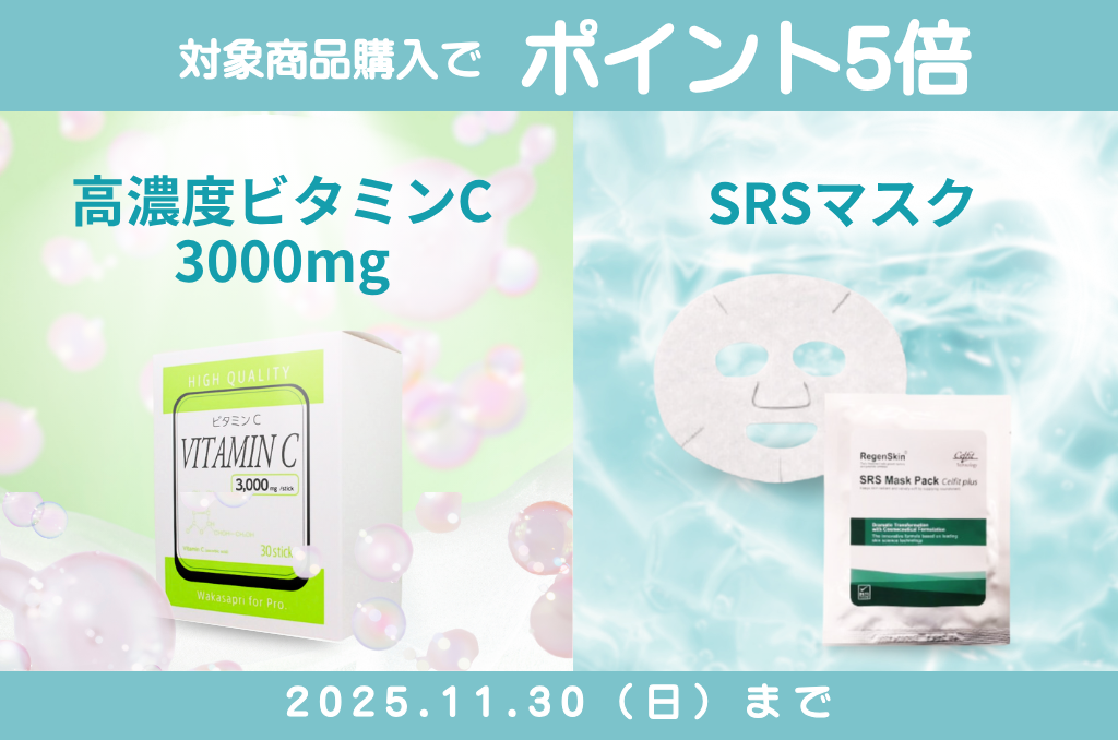 対象商品:高濃度ビタミンC3000mg、SRSマスクパック
