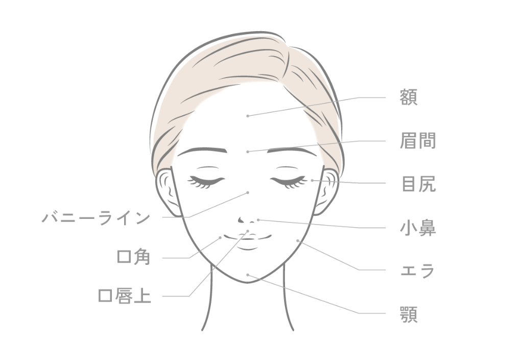 エラを含む顔各部位 50単位 ※わき・ふくらはぎは対象外