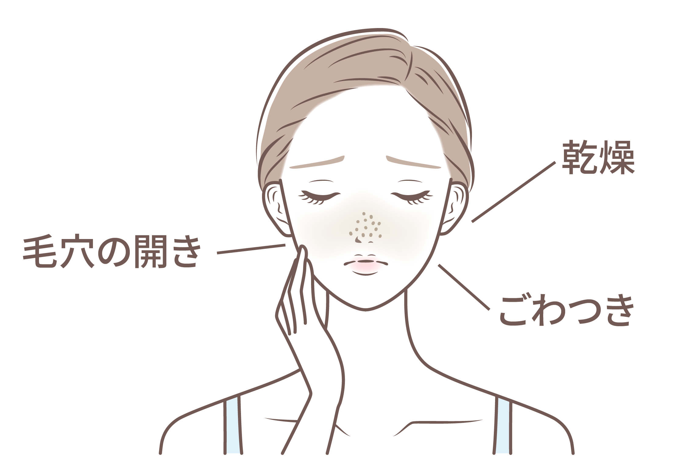さらに、乾燥・ごわつき・毛穴の開きといった「肌質の変化」も起こりやすくなります。