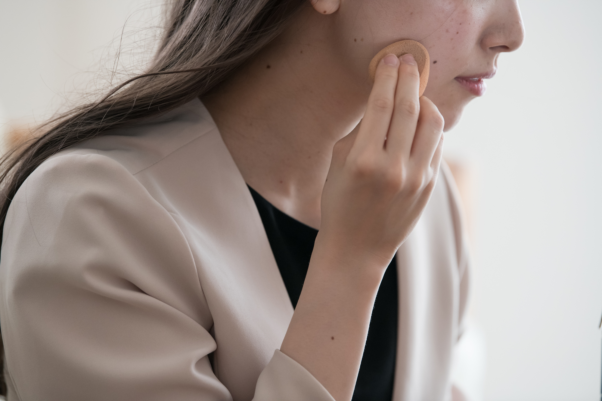 また、スポンジは余分なファンデーションをほどよく吸ってくれるため、厚塗りの防止にも役立ちます。