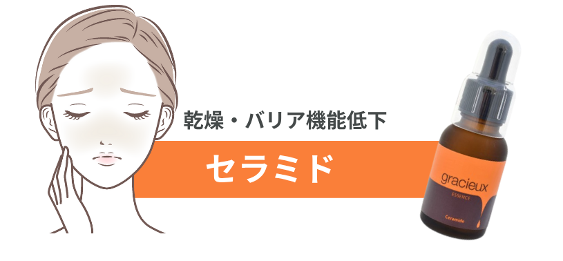 このセラミド成分を美容液で肌に補充することで、細胞間脂質を再構築して皮膚のバリア機能を高め、シワ・乾燥肌・敏感肌のカサつき、かゆみを防ぎます。水分をたっぷりキープできる肌質に改善し、ぷるぷる美肌に導きます。