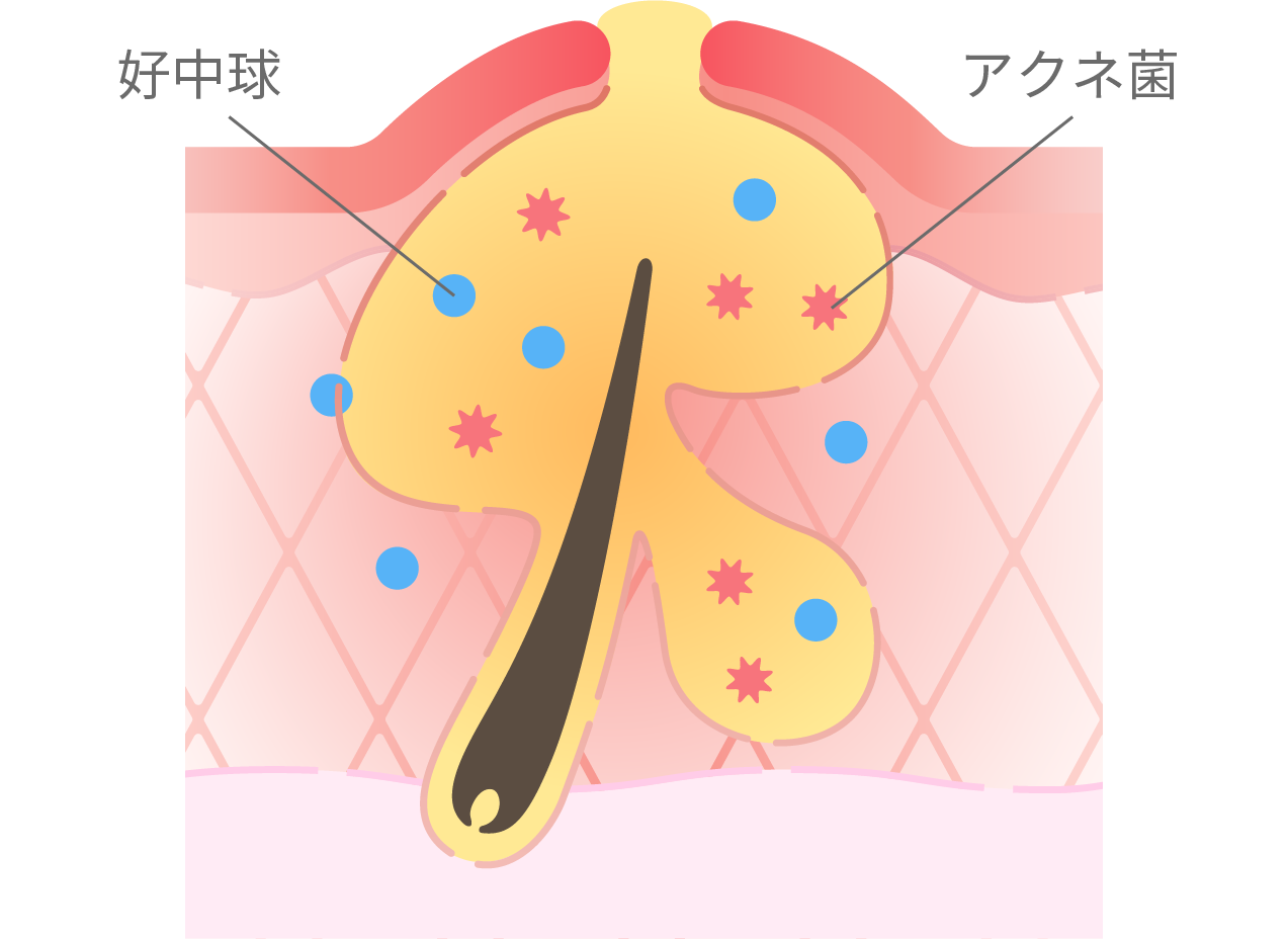 アクネ菌自体は、もともと誰の肌にも存在する常在菌ですが、毛穴の中で増えすぎると炎症を起こし、赤ニキビや膿を伴うニキビへと進行します。