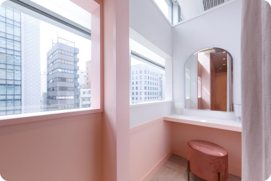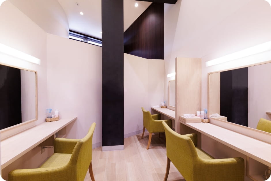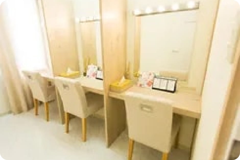 メイク落とし、洗顔料、化粧水、 クリーム、UVケアアイテムなど。 ドライヤーも完備! デート前でも手ぶらで来院OK!